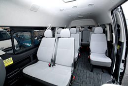 狭い道路や市街地でも通行可能ですので、近距離の送迎や、10名以下のグループでの小旅行には、こちらの車種が適しています。