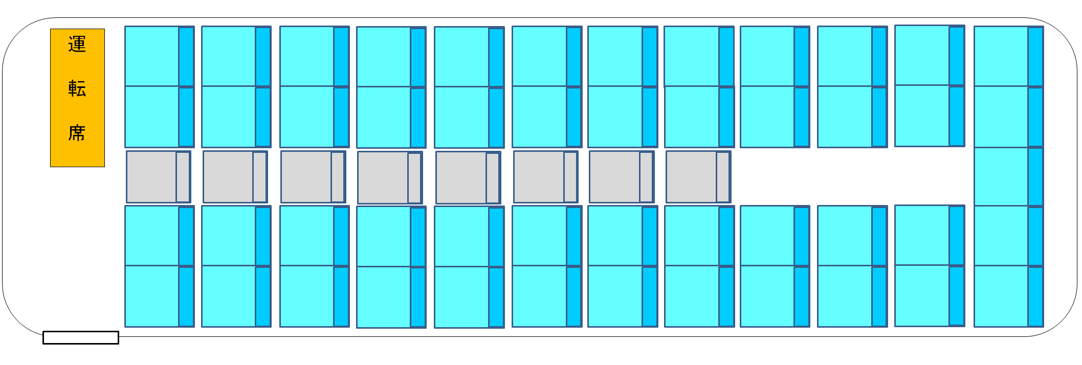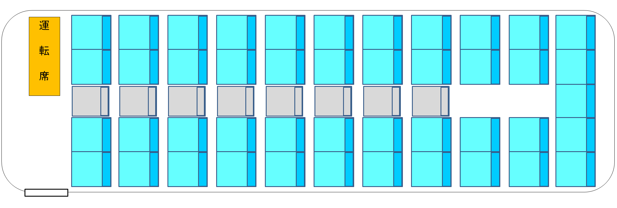 ※貸切大型バスの座席数・レイアウトや車内装備などは、会社や車種によって様々ですので、座席数レイアウト・装備によって選ぶ事が難しい場合がございます。